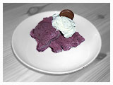 Blåbær og sukkeret varmes op og koges ind. Massen sigtes og afkøles. Æggeblommer og florsukker piskes godt og så vendes blåbærrene i. Flødes piskes til flødeskum og vendes i til sidst.