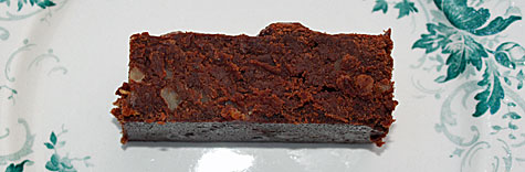 Smelt chokolade og smør over vandbad. Sigt mel og bagepulver sammen. Rør de øvrige ingredienser i ckokolade og tilsæt melet. Fordel dejen i en smurt form ca. 20 x 20 cm og bag kagen i ovnen ved 175 g. i ca. 30 min. Lad den afkøle på en rist og skær den i små firkanter. Fryseegnet, skæres i ca. 20 små firkanter.