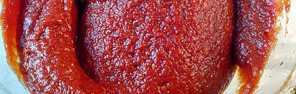 Varm olien op i en gryde (ikke aluminium) og sauter løg, hvidløg og æble i et par minutter. Tilsæt tomater, peberfrugt, krydderier og eddike. Lad det hele snurre under låg til det er godt mørt – ca ½ time. Kom derefter siruppen i. Kog dette ind til al væden er væk, og blend ketchuppen. Og det er altså ikke en fejl at der ikke er nævnt salt noget sted. Tomaternes naturlige saltindhold var nok. Den færdige ketchup kommes i et stort sylteglas, der var skoldet og skyllet Atamon.