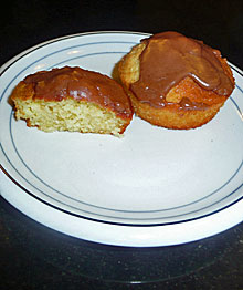 Som tillæg kan jeg nævne, at jeg lod mig inspirere af kanelglasuren. Jeg valgte nemlig at lave en glasur med kanel og citron, hvilket kombinerede det så de med det bitre i på fantastisk vis og gjorde, at den forholdsvis søde kage blev udfordret. Derudover havde jeg også held med ikke alene at rive æblerne ned i dejen, men også at ligge et lille æblestykke ind i den enkelte kage.