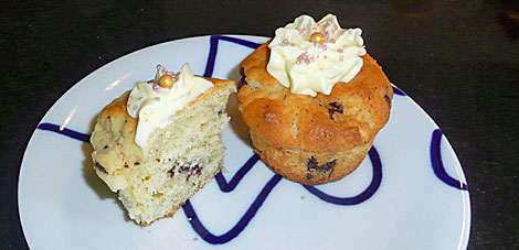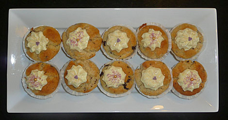 Her er de pyntet med en Flødeosttopping med appelsinsaft og appelsinskræld.